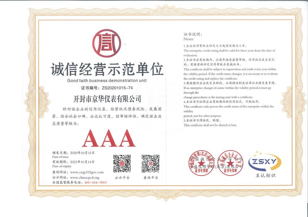 3A誠(chéng)信經(jīng)營(yíng)示范單位