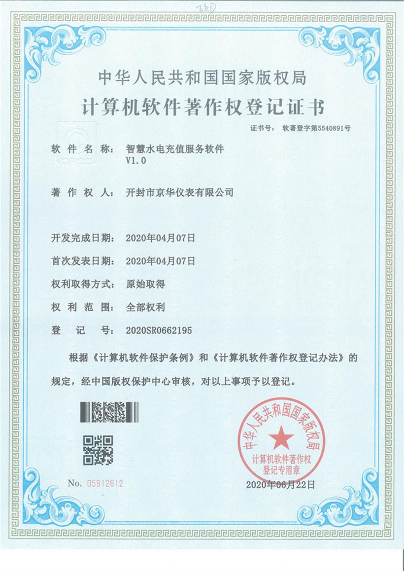 計算機(jī)著作權(quán)登記證書智慧水電充值服務(wù)軟件