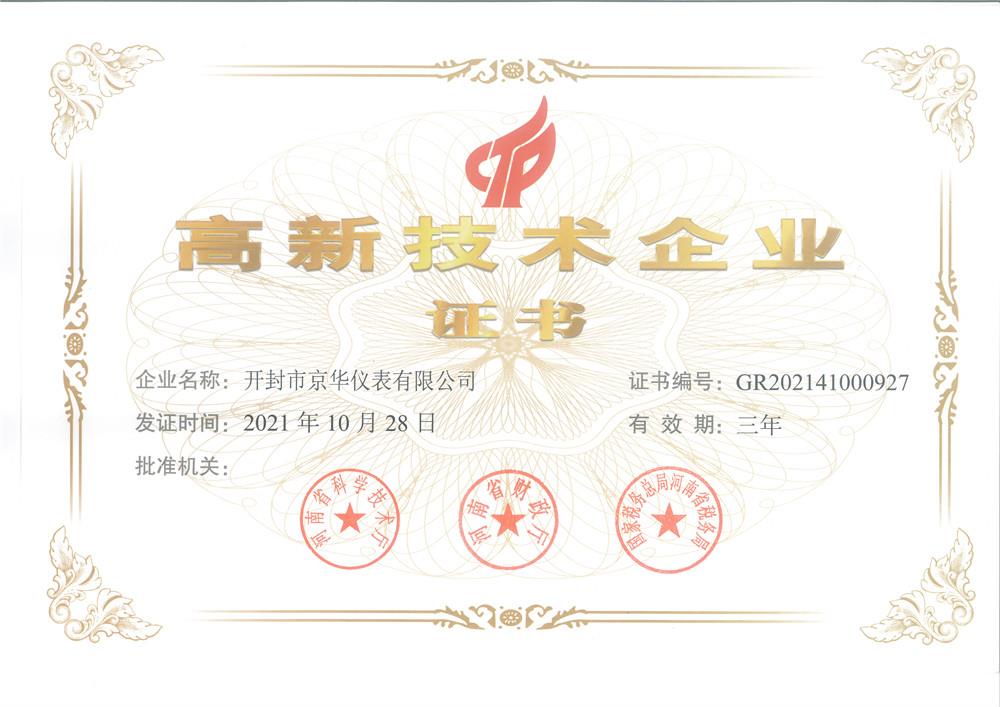 高新技術(shù)企業(yè)證書(shū)