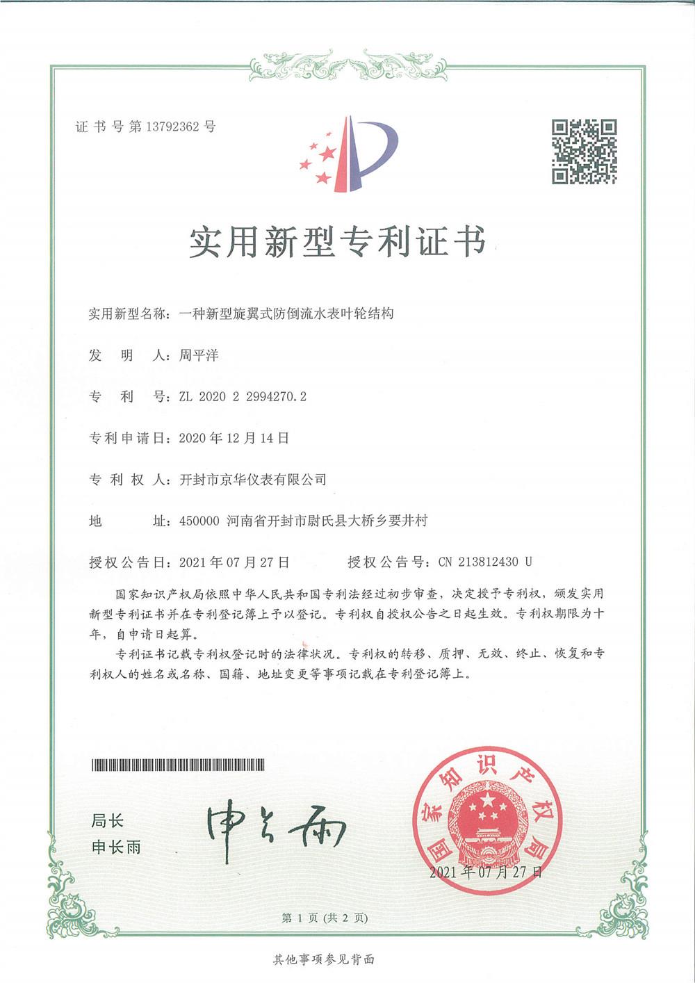 專利1一種新型旋翼式防倒流水表葉輪結構